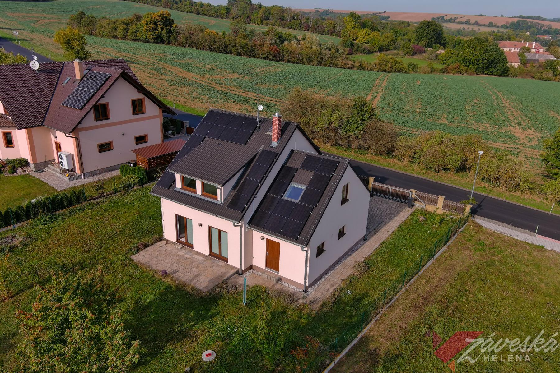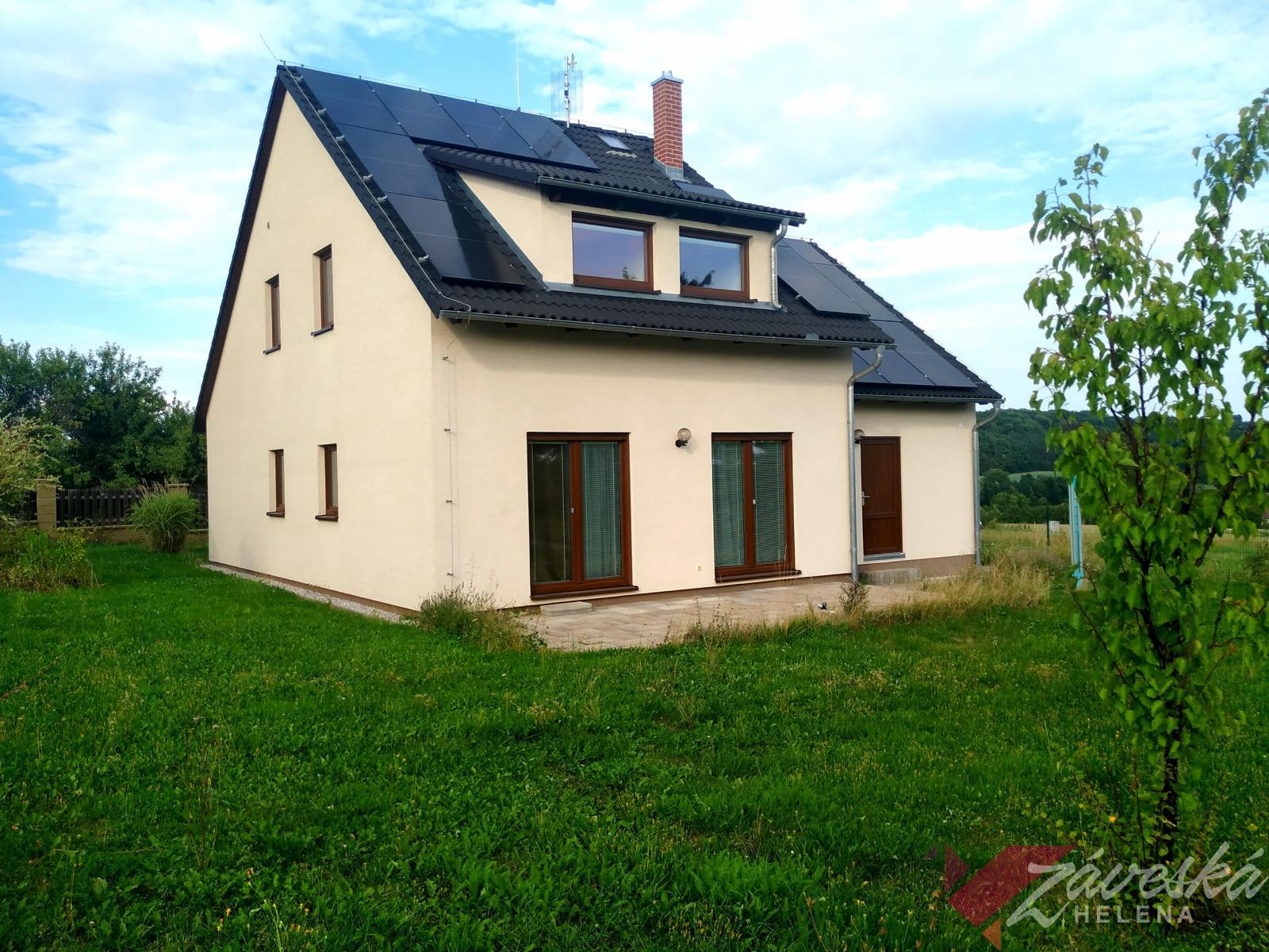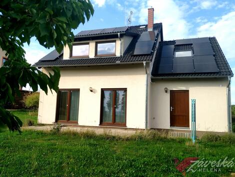 Nabízím Vám novostavbu rodinného domu z r. 2016, dispozice 5+1, energeticky samostatnou, s výkonným systémem Fotovoltaických panelů pro vlastní výrobu elektřiny se zpětným odkupem do sítě (střídač 20kW, jeden z nejlepších na trhu, bateriové úložiště 12,5 kWh, rozšíření až na 25 kWh, životnost 6000 cyklů, 30-35 let) a Nabíjecí sítí pro elektroauto, na rovinatém pozemku 800 m2, v Českém Ráji, na okraji obce Staré Hrady, s původně gotickým hradem stejného názvu, kde Vám stačí k nastěhování pouze vlastní kartáček na zuby. Vše ostatní k příjemnému bydlení je již vytvořeno. Jedná se o prefabrikovanou dřevostavbu, s rámovou konstrukcí, sádrovláknité desky Fermacell, tepelná izolace z minerální plsti Orsil-UNI., prefabrikované dílce a panely. Dispozice stavby 5+1, Vás uvítá vstupní chodbička s velkokapacitní vestavěnou skříní, dále menším pokojem, který může posloužit jako pracovna, či vlastní kancelář (svého času ji externě využíval lékař, zabývající se homeopatií). Bydlení v klidné obci Staré Hrady, 1 km od města Libáň, jižně od Jičína Zastavěná plocha 119,55 m2, obytná plocha cca 142 m2, obestavěný prostor 698 m3 Vstupní chodbička je řešena s vestavěnou velkokapacitní skříní. Vstoupíte-li dále, otevře se před Vámi obývací pokoj s pohledem a přímým vstupem dvěma francouzskými okny do prostoru zahrady Na obývací pokoj navazuje moderní zánovní kuchyně, řešená tak, že zde máte vše potřebné po ruce, včetně zabudovaných vestavných elektro spotřebičů (lednice s mrazákem, myčka, varná sklokeramická deska, vestavná trouba, digestoř). V domě je k dispozici dvojí sociální zařízení. V přízemí koupelna se sprchovým koutem a toaletou, v patře koupelna s vanou a toaletou. V přízemí domu se nachází také technická místnost, kterou lze projít do opravdu velkoryse prostorné garáže a dále do prostoru sloužícího pro zařízení technologií fotovoltaiky, kde se současně nachází i pohotovostní kuchyňka pro zpracování výpěstků ze zahrady. Do patra vede schodiště z masivu, na podestě stojí velmi prostorná vestavná skříň, 3 samostatné, neprůchozí pokoje poskytují vlastní intimitu, s výhledem do zahrady. Zdrojem tepla a teplé vody je nástěnný elektrokotel MORATOP Cosmotherm E12, elektrický zásobník objemu 160 litrů, otopná desková tělesa a bonusem jsou výkonné fotovoltaické panely, které pokrývají téměř celou zadní část střešní konstrukce. Výkon panelů bohatě pokryje vlastní spotřebu elektřiny a přebytky energie vrací úplatně do sítě, což je jistě finanční bonus. K nemovitosti náleží velkoryse prostorná garáž s nabíječkou pro elektro auto. Dům je k prodeji komplet zařízený, jak jej vidíte ve fotodokumentaci, vyjma několika kousků, samotné vybavení může být předmětem jednání o cenové relaci.. Okna plastová, termo trojsklo, venkovní elektrické žaluzie, podlahy plovoucí a keramická dlažba, centrální vysavač, stavba zateplena, Komínové těleso provedeno ze systémových prvků Schiedel PARAT ABSOLUT s protipožární vložkou, střešní krytina betonová taška, V prostoru zahrady je v zemi umístěna retenční nádrž na dešťovou vodu. V místě veškeré IS, vyjma plynu. Lokalita 1 km od městečka Libáň 15 km Jičín, Nymburk 30 km, Poděbrady 36 km, Mladá Boleslav 27 km, Praha Černý Most 70 km. Vřele doporučuji prohlídku, nebudete litovat, financování pro Vás rádi zajistíme. V případě zájmu kontaktujte prosím makléře.