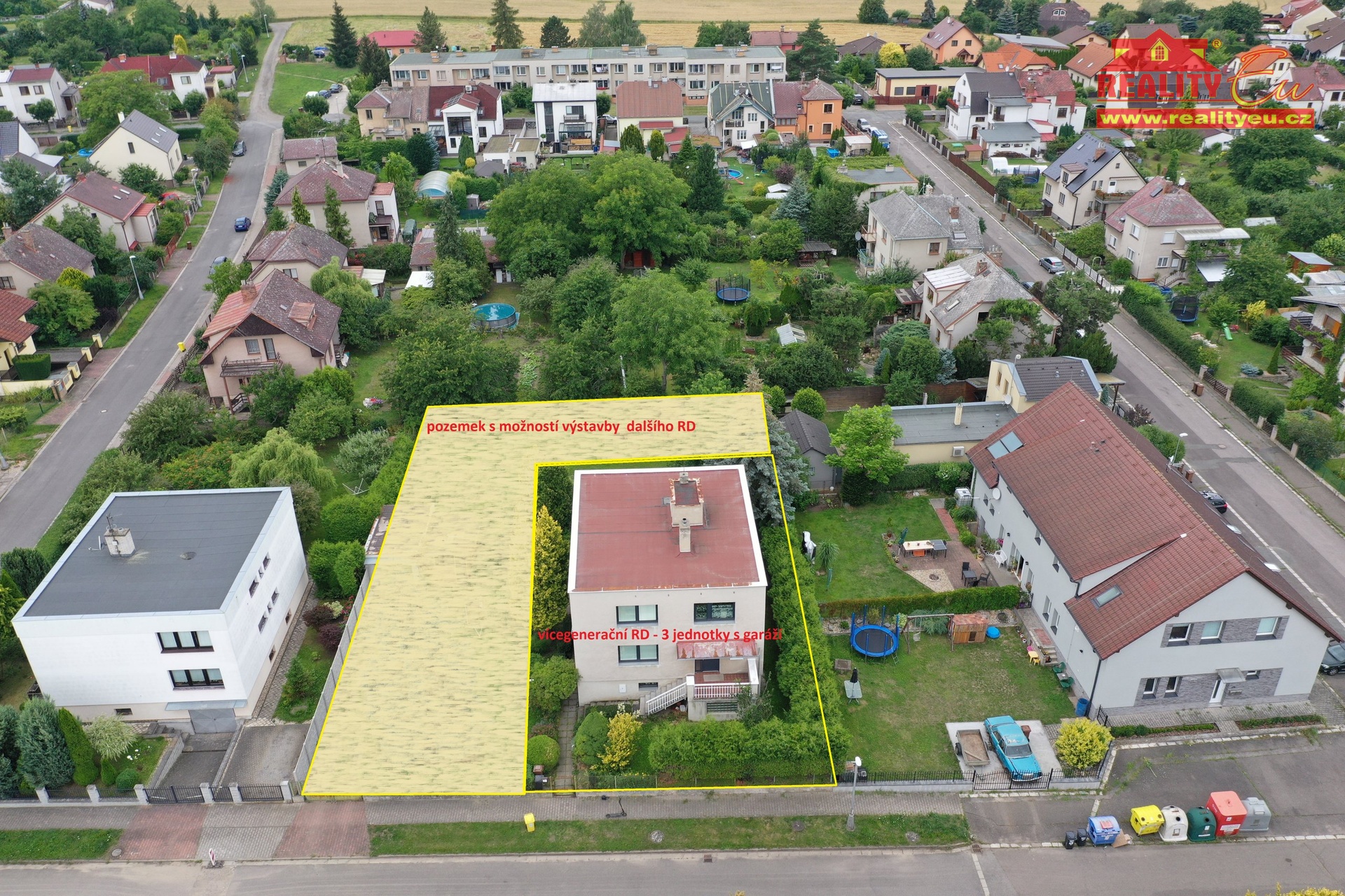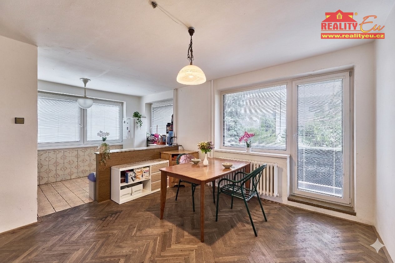 Nabízíme k prodeji zděný rodinný dům z roku 1986, situovaný v klidné vilové čtvrti Hradec Králové - Kukleny. Nemovitost je vhodná jak pro vícegenerační bydlení, tak jako investiční příležitost s potenciálem dalšího rozvoje. Dům je dispozičně řešen do tří nadzemních podlaží. 1. nadzemní podlaží má samostatný vstup a tvoří samostatnou jednotku se dvěma obytnými místnostmi, sociálním zázemím, kotelnou na tuhá paliva a garáží. 2. a 3. nadzemní podlaží mají společný vstup a jsou využívána jako samostatné bytové jednotky. Ve 2. NP se nachází byt 4+1 s lodžií o výměře cca 90 m2, ve 3. NP byt 4 kk, který prošel modernizací a nabízí komfortnější standard bydlení. Nemovitost je v současnosti využívána jako investiční - všechny tři jednotky jsou pronajaty. Velkou předností je rozlehlý pozemek o výměře 1 214 m2, kde je dle schválení možné realizovat výstavbu dalšího rodinného domu, což výrazně zvyšuje investiční potenciál celé nemovitosti. Na pozemku se dále nachází samostatná garáž a kryté venkovní posezení. Dům je napojen na městský vodovod, kanalizaci a elektřinu (240/400 V). K dispozici je také vlastní zdroj vody pro zalévání. Na hranici pozemku je plyn (HUP). Vytápění je řešeno ústředně (kotel na tuhá paliva nebo elektrokotel), ohřev vody zajišťují elektrické bojlery. Díky své poloze v klidné části města s výbornou dostupností a zároveň s potenciálem další výstavby představuje tato nemovitost zajímavou příležitost jak pro investory, tak pro vícegenerační bydlení.