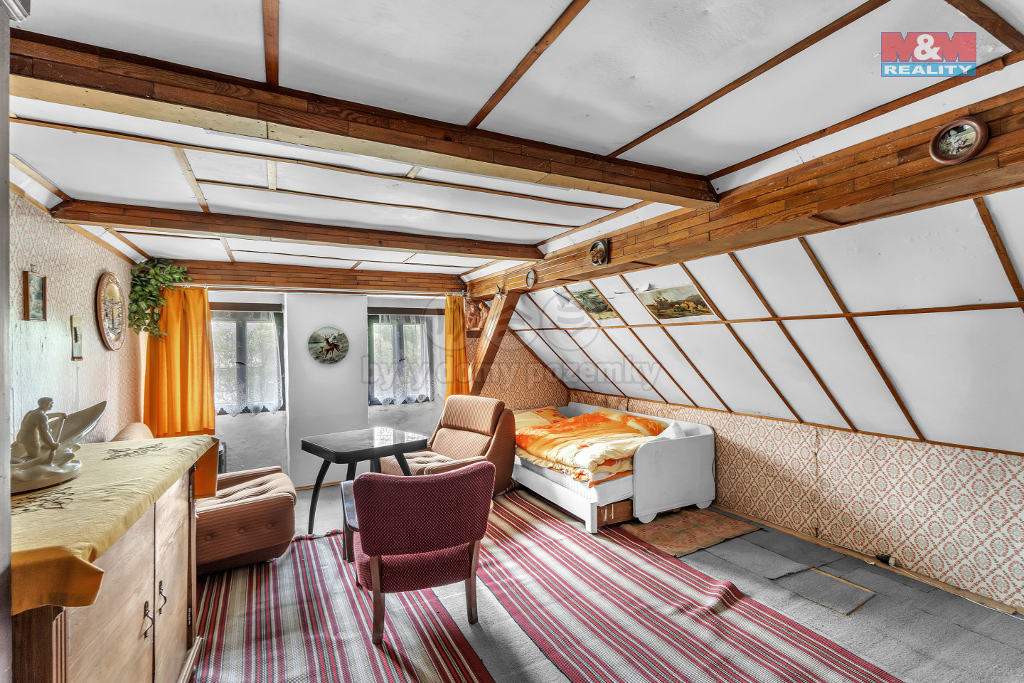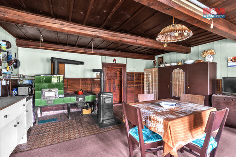 Nabízíme k prodeji historickou chalupu v klidné části obce Třebihošť, katastrální území Zvičina. Tato jedinečná nemovitost, postavená před více než 120 lety, je ideální pro milovníky historie a klidného venkovského života. Chalupa má 3 místnosti, 2 nadzemní a 1 v podkroví. V přízemí najdete dlouhou chodbu, velkou světnici s krásnými kachlovými kamny na tuhá paliva, komoru a vchod do sklepa. V patře je letní místnost a půdní prostor, součásti nemovitosti je i suché WC. Nemovitost je bez vlastní vody, avšak nabízí se zde možnost, na základě věcného břemene čerpat vodu u sousední chalupy. Pozemek o rozloze 220 m2 nabízí dostatek prostoru pro relaxaci a potřebnou rekonstrukci dle vašich představ. Okolní krajina je ideální pro turistiku, lyžování a paragliding a další volnočasové aktivity. Nabízí nádherné výhledy na Krkonoše a je ideální pro pěší výlety a cykloturistiku. V blízkosti se nachází Raisova chata s rozhlednou z unikátní otáčivé prosklené kupole a kostel sv. Jana Nepomuckého.