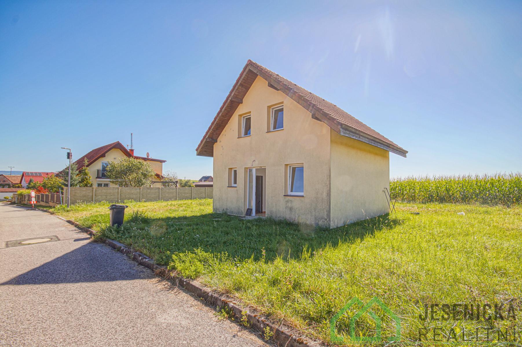 Jesenická realitní nabízí k prodeji rodinný dům postavený v roce 2015, který se nachází na klidném okraji obce Houdkovice. Nemovitost stojí na rovném pozemku o celkové výměře 752 m, z toho zahrada má plochu 703 m. Díky své poloze poskytuje dům dostatek soukromí i krásný výhled do zeleně. V přízemí domu se nachází prostorný obývací pokoj s přímým vstupem na zahradu, kuchyně a koupelna. Druhé podlaží nabízí další koupelnu s WC, ložnici a pokoj orientovaný do zahrady. Dům je slunný, zateplený 10 cm polystyrenu a vybavený plastovými okny s dvojskly. Vytápění je řešeno olejovými radiátory, přičemž na hranici pozemku je k dispozici přípojka plynu, takže je možné zřídit plynové centrální vytápění. Ohřev vody zajišťuje elektrický bojler. Objekt je napojen na obecní vodovod, odpadní vody jsou svedeny do septiku s přepadem do místní kanalizace. Rozvody vody a odpadu jsou vedeny v plastu, elektřina je v mědi (třífázová). Dům zatím nebyl zkolaudován, nicméně k dispozici je kompletní technická dokumentace. Tento fakt je zohledněn v ceně a jsme nadále připravení o ceně jednat. Nemovitost je vhodná jak k trvalému rodinnému bydlení, tak i k rekreačnímu využití. Neváhejte nás kontaktovat s dotazy či možností prohlídky.
