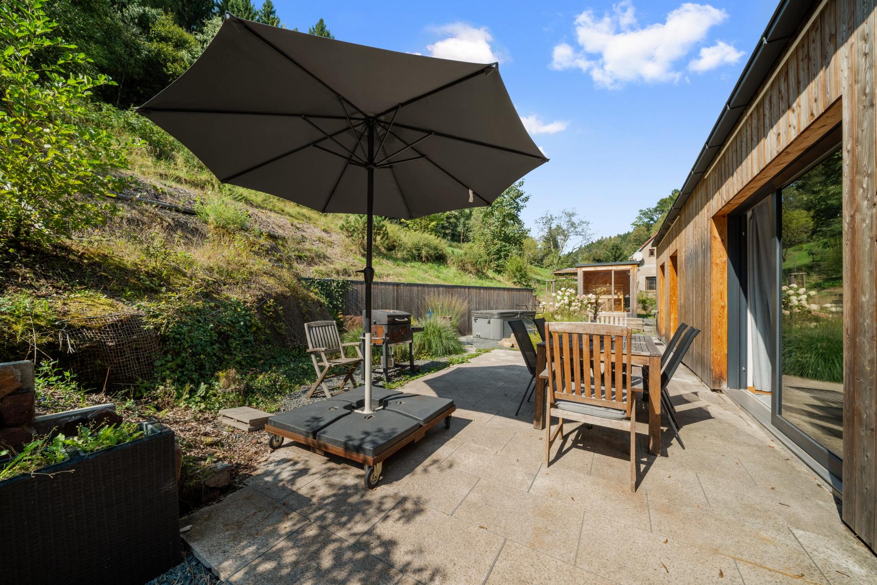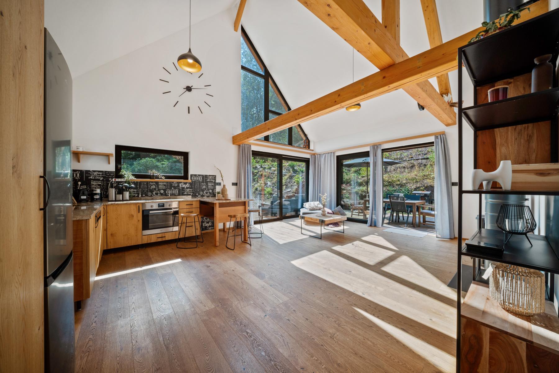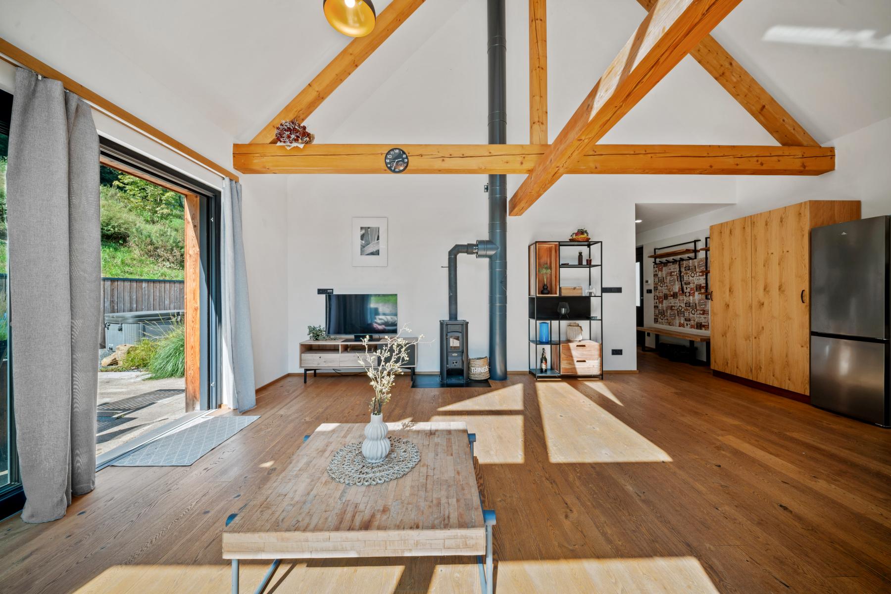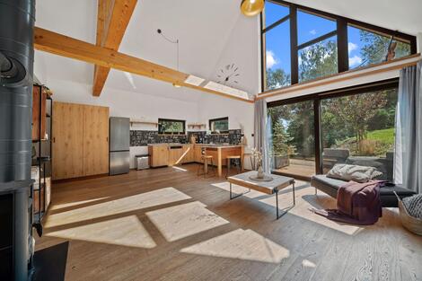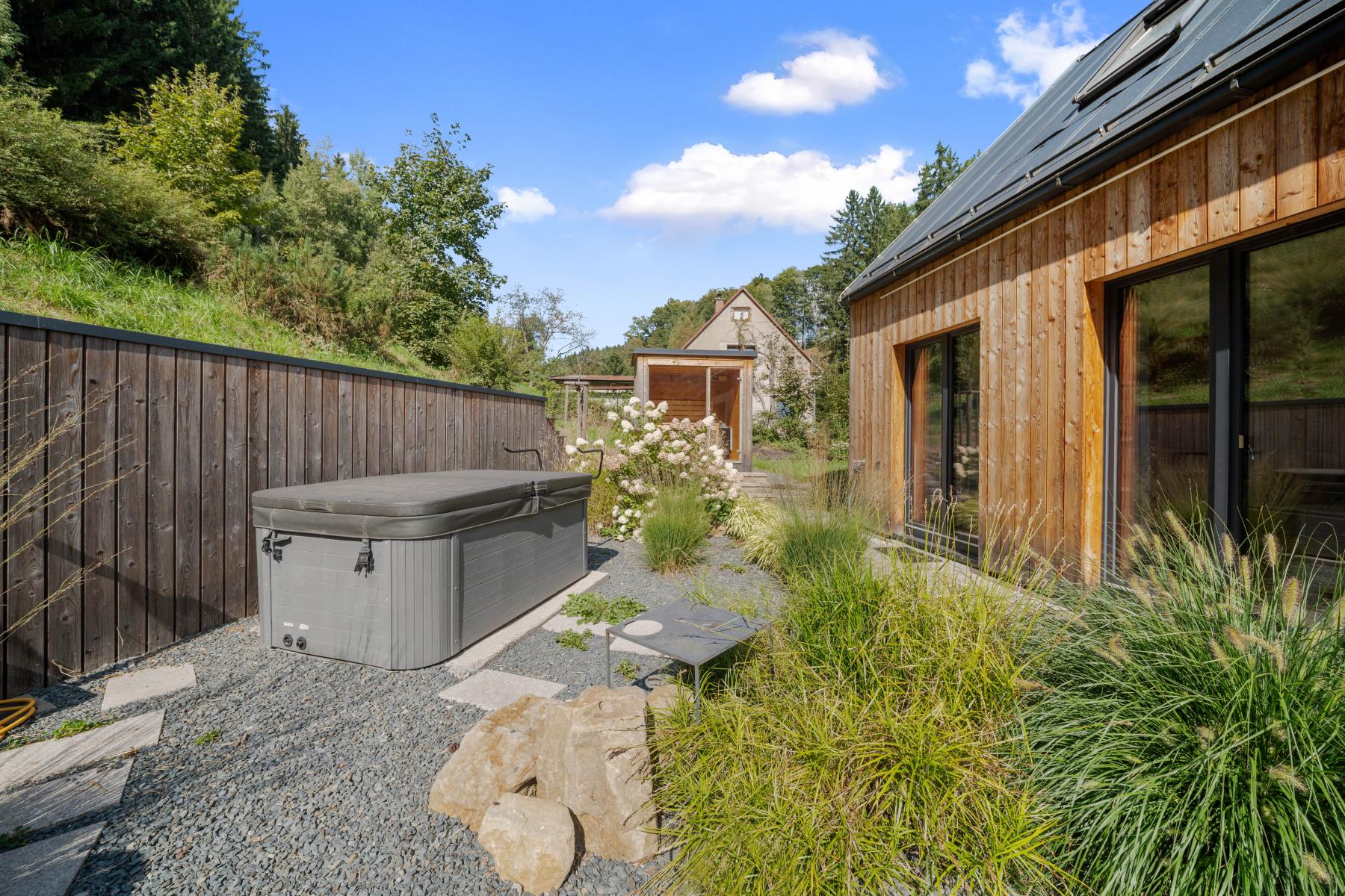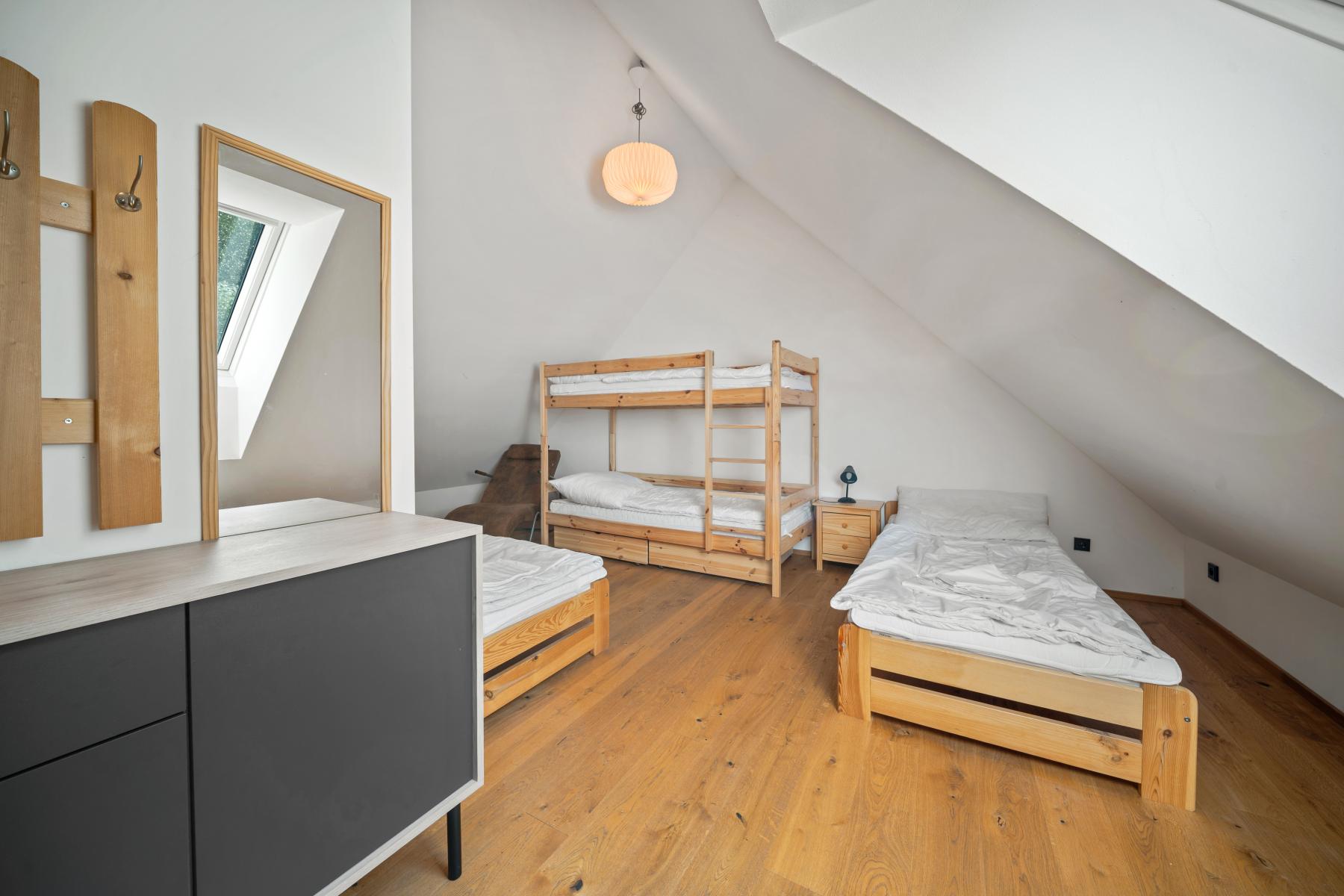 Nabízíme k prodeji moderní rodinný dům zkolaudovaný v roce 2022, který se nachází v klidné lokalitě Podkrkonoší Voletiny, Trutnov. Nemovitost stojí na pozemku o velikosti 1 402 m a nabízí užitnou plochu 151,5 m. Díky své dispozici, moderním technologiím a poloze je ideální jak pro rodinné bydlení, tak i jako investiční příležitost s možností krátkodobých pronájmů (Airbnb, Booking). Dům je rozdělen do tří podlaží. V suterénu se nachází garáž, technická místnost a chodba se schodištěm. V přízemí je vstupní chodba, samostatné WC, ložnice s vlastní koupelnou a obývací pokoj s krbovými kamny, který je propojen s moderní kuchyní a jídelním koutem. Otevřený krov dodává prostoru vzdušnost a útulnou atmosféru. Z venkovní strany vede schodiště do podkroví, kde je řešen další pokoj s vlastní koupelnou. Součástí domu je i venkovní vířivka a sauna, které umocňují komfort celého bydlení. Vytápění zajišťuje úsporné tepelné čerpadlo Viessmann (vodavzduch) s podlahovým teplovodním vytápěním v celém domě. Provoz je díky moderním technologiím nízkonákladový. Garáž poskytuje dostatek prostoru pro auto, kola, lyže či motorky. Lokalita nabízí široké možnosti sportovního i rekreačního vyžití. Přímo kolem domu vede cyklostezka a okolní kopcovitý terén je vhodný pro cyklistiku, pěší turistiku i zimní sporty. V blízkosti najdete Adršpašské skály, ZOO Dvůr Králové, přehradu Les Království, lyžařské areály Pec pod Sněžkou, Janské Lázně a Mladé Buky. Sportovní a volnočasové vyžití doplňují bowling, tenis nebo golf v nedalekém Hotelu Davídek či Grund Resortu. Dům je v současné době využíván pro krátkodobé pronájmy se zavedeným systémem rezervací a atraktivní cenovou strukturou. Týdenní pobyt pro 6 osob se pohybuje okolo 25 200 Kč, víkendový 10 800 Kč a silvestrovský týden 32 760 Kč. Tato nemovitost je ideální volbou pro ty, kteří hledají moderní a úsporné bydlení v přírodě, ale zároveň v dosahu města. Díky své poloze a možnostem využití se jedná o výbornou investiční příležitost. Více informací vám rád poskytnu telefonicky nebo při osobní prohlídce.