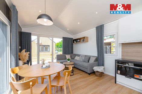 Tento jedinečný dům s užitnou plochou 55 m2 nabízí komfortní bydlení díky promyšlené dispozici. Na jednom nadzemním podlaží naleznete prostorný obývací pokoj s kuchyňským koutem, velkou ložnici, další pokoj a koupelnu se sprchovým koutem ve výklenku. Předsíň je vybavena praktickou šatní skříní. Dům je postaven ze smíšené konstrukce a pyšní se elegantním a minimalistickým designem. Tato verze zahrnuje vestavěný nábytek nad postelemi, který zajišťuje maximální využití prostoru a udržuje ložnice v perfektním pořádku. Ideální volba pro ty, kteří hledají klidné a pohodlné bydlení. Stav nemovitosti je velmi dobrý. Nechte se okouzlit spojením komfortu a přírody! S výhodným financováním pomůžeme. Realizace do 6 měsíců od vyřízení stavebního povolení, které též dokážeme zajistit. Prohlídka je možná po domluvě s makléřem v showroomu v Rychnově nad Kněžnou.