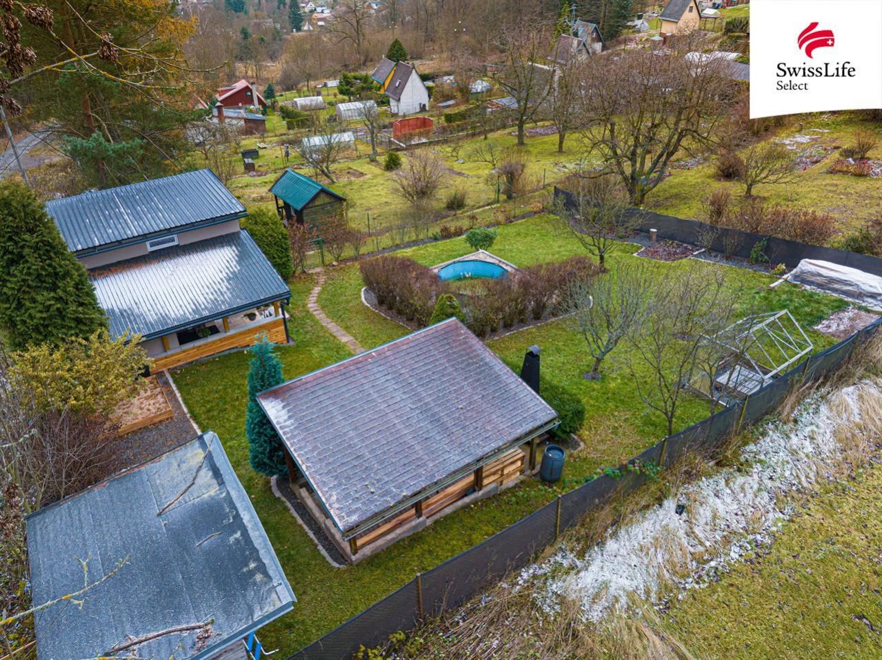Nabízíme k prodeji zahradu s chatou v osobním vlastnictví v Žacléři, okr. Trutnov. Chata se nachází v zahrádkářské kolonii "Střízlivák", a nabízí výhled přímo na Skiareál Prkenný Důl. Užitná plocha chaty je 33 m2. Jedná se o dřevostavbu, jejíž výstavba byla dokončena v letošním roce (2025). Chata je patrová, přičemž nahoře je prostor řešen pro spaní. Celý objekt je kompletně zateplený, a to včetně střechy a podlah. Vytápění zatím vyřešeno není, ale lze dodělat. Chata je napojena na vodovod, který však lze užívat pouze od dubna do října/listopadu. Odpady jsou svedeny do jímky s trativodem. Ohřev vody zajišťuje elektrický bojler. Přístavek chaty, kde se nachází koupelna s wc, je zděný. Chata je kompletně vybavena, včetně kuchyňské linky a spotřebičů. Pozemek je velký 519 m2, je mírně svažitý, a celodenně slunný. Nachází se zde dřevěná pergola s grilem, nadzemní bazén, kůlna, skleník či pískoviště pro děti. Přímo naproti chatě se nachází lyžařský areál. Samotné městečko Žacléř, ležící na úpatí Žacléřského hřbetu, ve výšce 600 m.n.m., nabízí nespočet tras také pro běžkaře. Pouhých 5 km od Žacléře najdete dělostřeleckou tvrz Stachelberg, která leží v blízkosti Rýchorského pralesa nad vesnicí Babí. Žacléř se nachází ve strategické poloze vůči okresnímu městu Trutnov, Polsku, a také vůči našim nejvyšším horám, Krkonoším. Chata je vhodná pro rekreaci v letních měsících, a po menších úpravách i k rekreaci v měsících zimních, zejména pro nadšené turisty a lyžaře. V současné době je řešena možnost přidělení evidenčního čísla. Synonymem této chaty se zahradou, je klid, čistý vzduch a příroda ze všech stran. Prohlídku vřele doporučujeme.