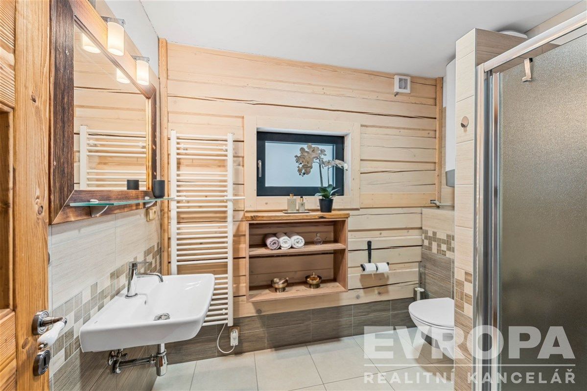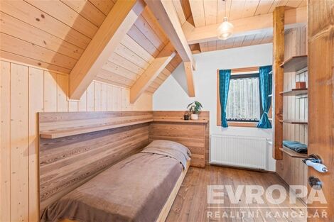 Prodej horské chalupy vhodné pro rodinnou rekreaci, ale i k investičním účelům. Chalupa se zastavěnou plochou 86 m2 se rozprostírá na pozemku o velikosti 1 093 m2 a nachází se v podhůří Krkonoš v obci Prkenný Důl v Žacléři. Horské kouzelné okolí nabízí hodně relaxu, ale i široké sportovní vyžití. V letních měsících turistika v zimním období lyžování na nedalekých sjezdovkách. Přízemí je dělené na vstupní chodbu, dobře vybavenou lyžárnu s držáky na lyže a vyhřívaný žebřík na lyžařskou obuv, technickou místnost, koupelnu se sprchovým koutem a toaletou a úložný prostor pod schodištěm. Dominantou přízemí je světnice se stylovými kachlovými kamny a kuchyňský kout s vestavěnými spotřebiči. Ze světnice je vstup na dřevěnou terasu s nádherným výhledem do svahu. Po moderním schodišti se vystoupá do chodby, ze které je vstup do třech pokojů. Dva pokoje mají koupelnu se sprchovým koutem a toaletou. Každý pokoj má vstup po dřevěném žebříčku do prostor pod střechou, který je přizpůsobený na přistýlky. Celkově má tedy chalupa kapacitu až 13 osob. Chalupu vytápí chytrý elektrokotel, kterým je možné si zatopit i na dálku. V domě jsou dva bojlery na ohřev vody. Voda je obecní a je napojena na filtraci, kanalizace je obecní. Dům je zabezpečen bezpečnostním systémem. Interiér je dokonalým propojením dřeva, doplněné o stylová kachlová kamna a designovou dlažbu. Koupelny jsou vybavené vkusnou sanitou, podlahovým vytápěním a elektrickými žebříčky. Chalupa, zkolaudovaná v roce 2016 prvními a jedinými majiteli, stojí na rovině a je zde vytvořený a připravený prostor na stavbu vodního díla. Část zahrady za chalupou je ve svahu a na hranici zbylé rovinaté části zahrady protéká potok s mírným dnem. Souznění přírody, vkus a moderní technologie, absolutní soukromí, kouzelné výhledy a v pěší vzdálenosti veškerá občanská vybavenost v centru obce, to je dennodenní "rutina" kterou tato chalupa nabízí. Jedná se o prodej firemního vlastnictví, tedy je koupě výhodná hlavně pro plátce DPH s možností odpočtu. Těším se na běžných prohlídkách, ale nabízím také videoprohlídky v reálném čase přes WhatsApp, Face Time, Messenger, Skype aj. <a href="https://www.eurobydleni.cz/byty/1_kk/trutnov/obec-vrchlabi/pronajem/"><strong>Pronájem bytu 1+kk Vrchlabí</strong></a>