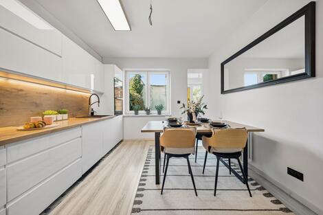 Nabízíme k prodeji rodinný dům po rekonstrukci nacházející se v klidné městské části Svobodné Dvory v Hradci Králové. Dům disponuje užitnou plochou 110 m2 a pozemkem o celkové výměře 330 m2, který tvoří zahrada a uzavřené nádvoří poskytující dostatek soukromí. Nemovitost je postavena z cihelné konstrukce a prošla postupnou rekonstrukcí. Ze zádveří je vstup do koupelny s WC a navazující chodby, která propojuje obývací pokoj s jídelnou a kuchyní. Ze schodiště se dostanete do vrchního patra, kde se nachází ložnice a samostatný pokoj vhodný jako dětský pokoj, pracovna nebo pokoj pro hosty. Ze schodišťového prostoru je zároveň vstup do menšího sklepa, který je v současnosti využíván jako spíž. Přední část domu je zateplena minerální vatou o tloušťce 160 mm a v rámci rekonstrukce bylo provedeno také odhlučnění sousední stěny pomocí akustického SDK systému. Objekt je napojen na veškeré inženýrské sítě veřejnou kanalizaci, vodovod, plyn i elektřinu, přičemž elektroinstalace byla kompletně obnovena a jsou zde nové měděné rozvody. Vytápění domu zajišťuje plynový kondenzační kotel Viessmann instalovaný v roce 2024, doplňkovým zdrojem vytápění mohou být krbová kamna, která však současný majitel nevyužívá. V koupelně je realizováno podlahové vytápění. V přízemí domu byly provedeny nové podlahy včetně tepelné izolace z podlahového polystyrenu o tloušťce cca 5 cm a nových betonových potěrů. Součástí pozemku je také zahradní domek o ploše přibližně 40 m2, který nabízí možnost propojení s hlavním objektem a rozšíření užitného prostoru.Zahradní dům má izolační trojskla a jedná se o zateplený sendvičový systém, konstrukce dřevostavba. Lze jej využít například jako letní griloviště, wellness zónu, domácí kancelář nebo ateliér. Máte zájem o prohlídku této nemovitosti? Neváhejte mě kontaktovat telefonicky nebo zprávou a rád vás domem osobně provedu. <a href="https://www.eurobydleni.cz/byty/1_1/praha-5/obec-smichov/prodej/"><strong>Prodej bytu 1+1 Praha 5, Smíchov</strong></a>